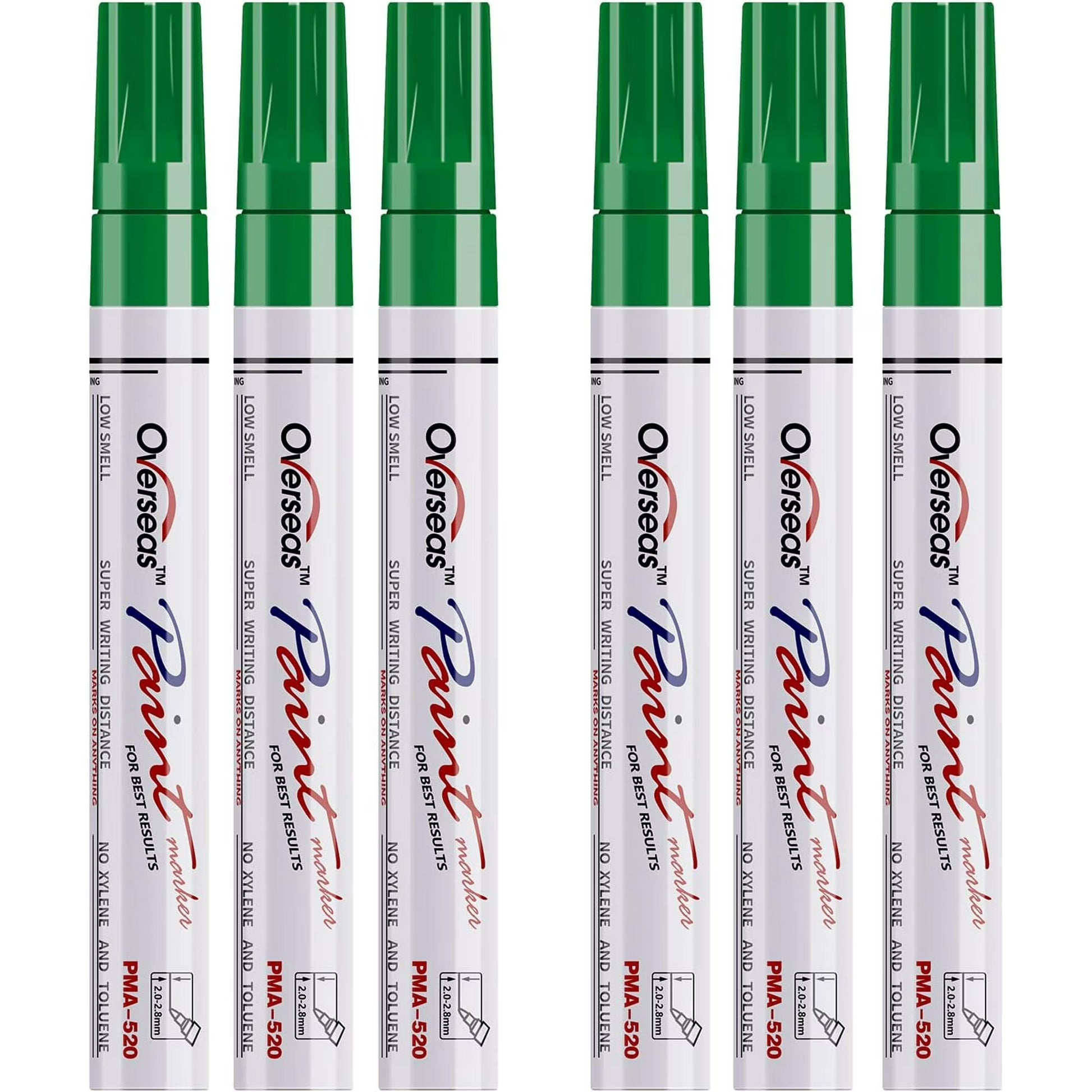 Overseas Green Paint Markers Pens - Single color 6 Pack Permanent Oil Based Paint Pen, Medium Tip, Quick Dry and Waterproof Marker for Rock, Wood, Fabric, Plastic, Canvas, Glass, Mugs, Canvas, Glass