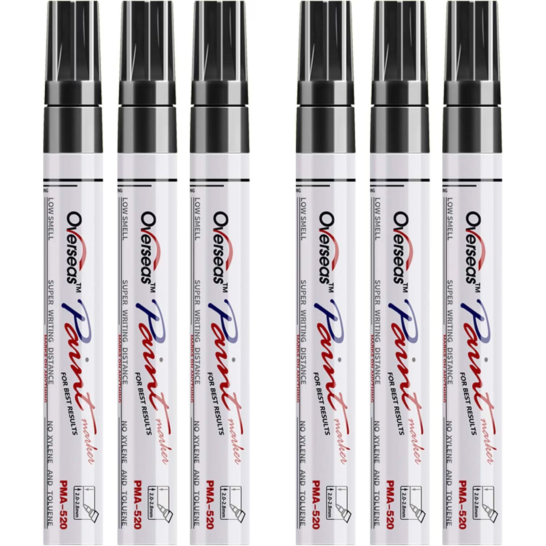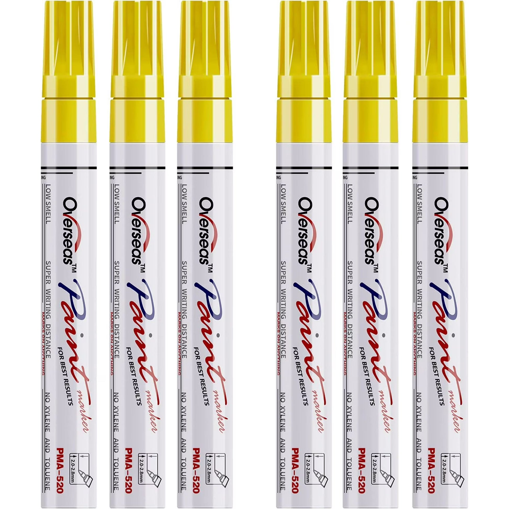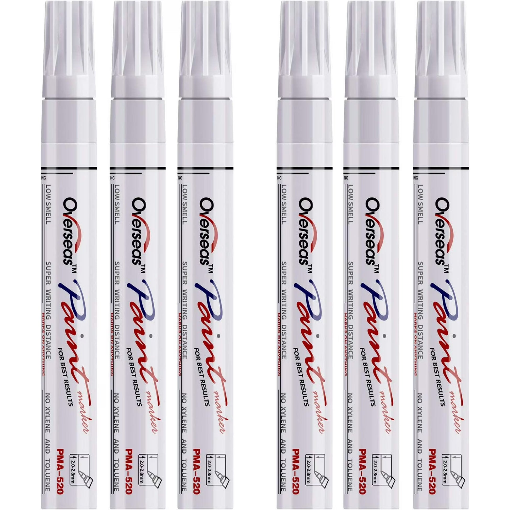 Overseas White Paint Markers Pens - Single color 6 Pack Permanent Oil Based Paint Pen, Medium Tip, Quick Dry and Waterproof Marker for Rock, Wood, Fabric, Plastic, Canvas, Glass, Mugs, Canvas, Glass