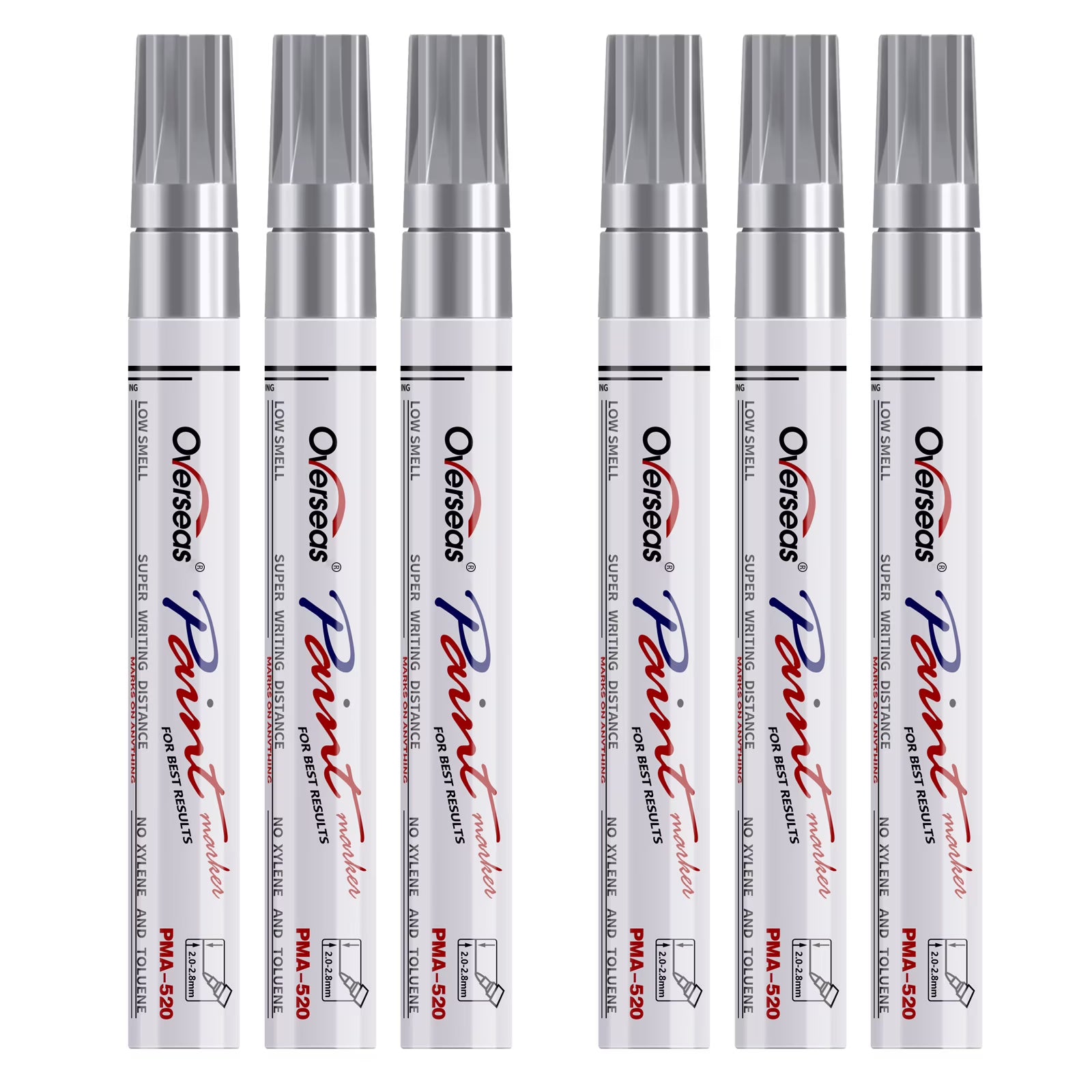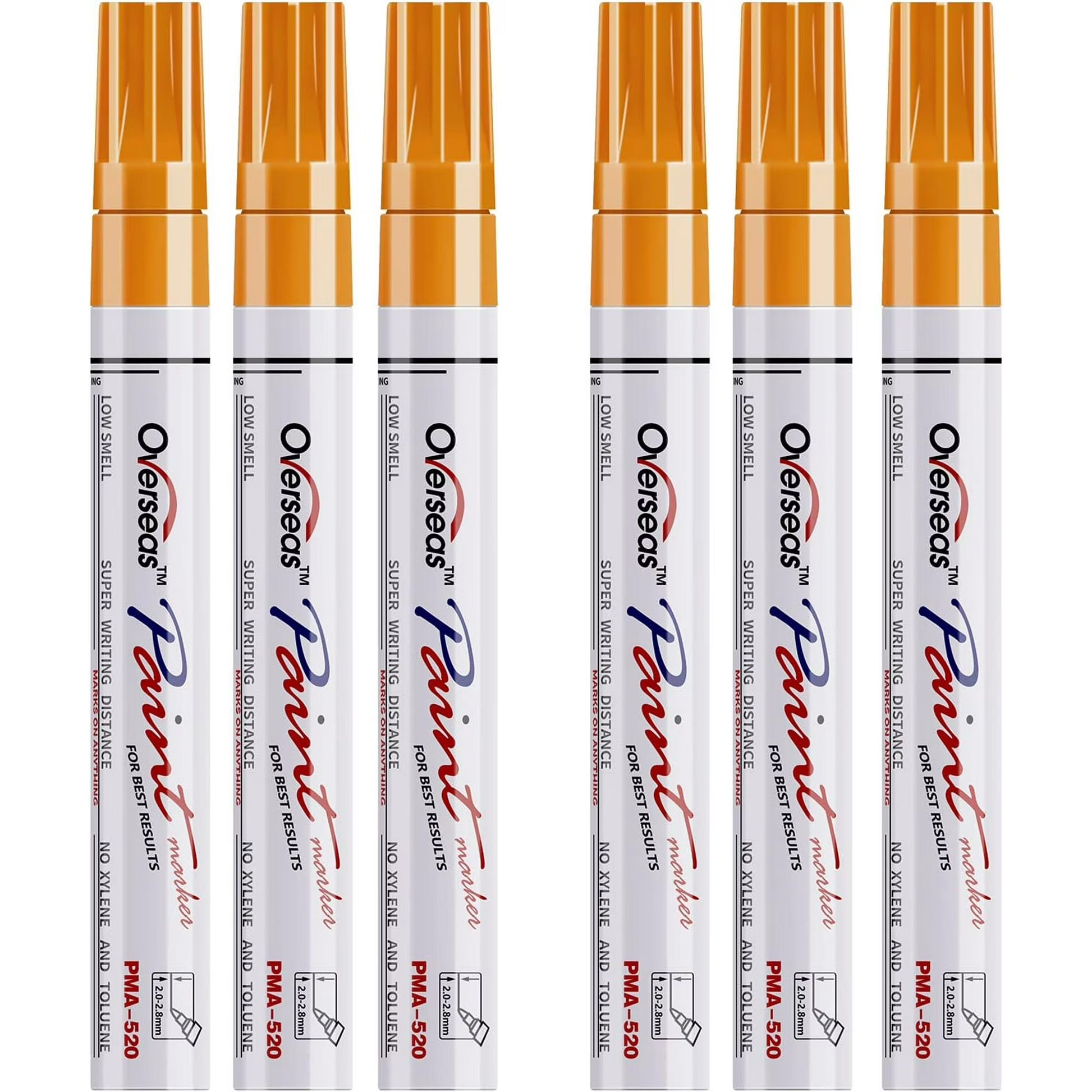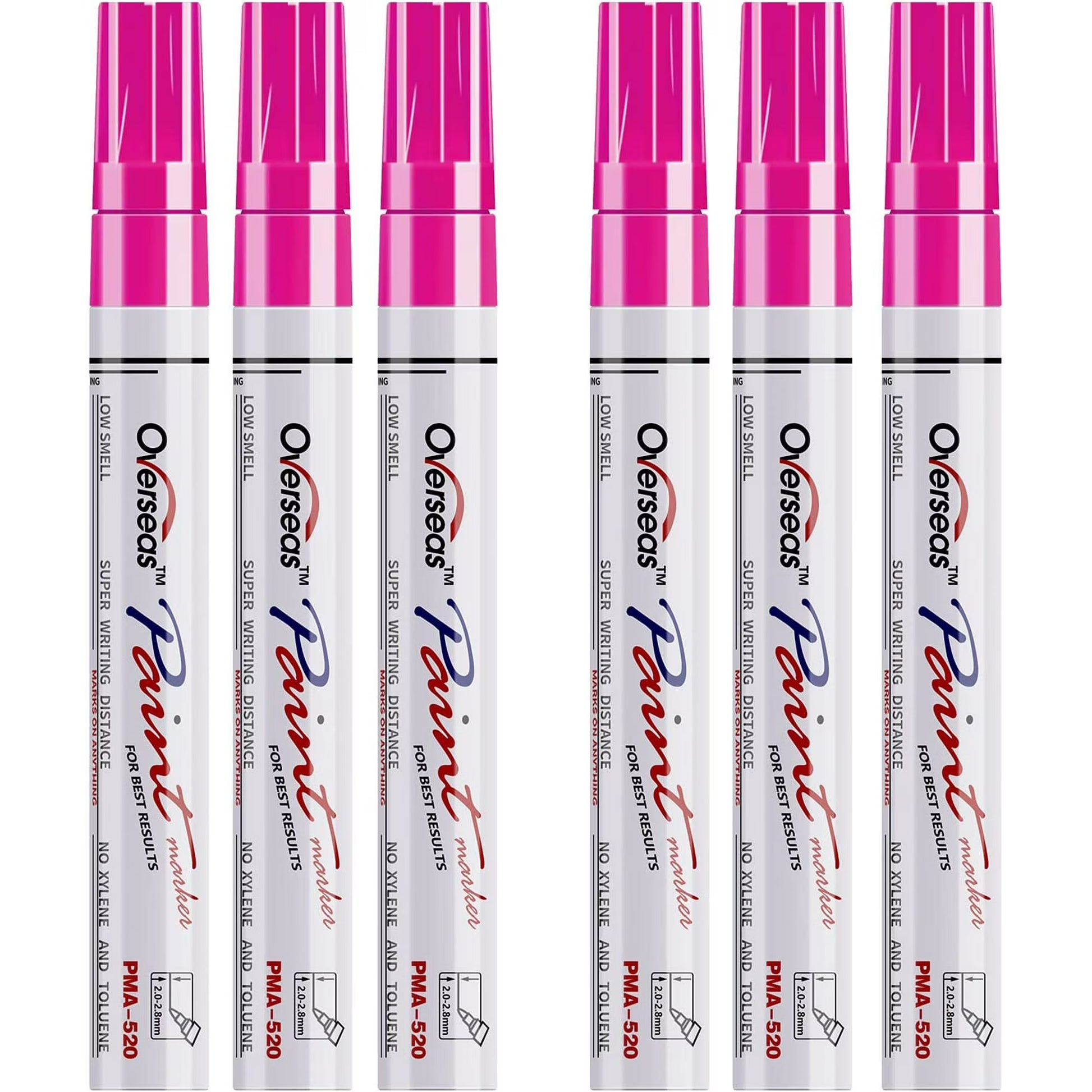 Overseas White Paint Markers Pens - Single color 6 Pack Permanent Oil Based Paint Pen, Medium Tip, Quick Dry and Waterproof Marker for Rock, Wood, Fabric, Plastic, Canvas, Glass, Mugs, Canvas, Glass